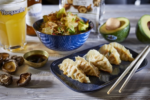 כיסונים ממולאים בפרגיות עם סלט אבוקדו טרי ופומלה (ישראל אהרוני)